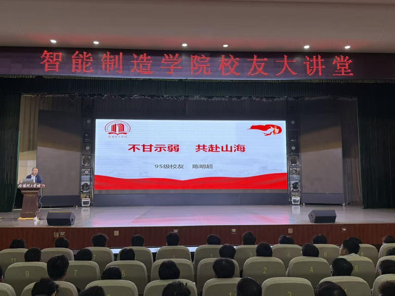 26日,校友陈明超以《不甘示弱 共赴山海》为主题,从厚德博学——追忆校园生活、求真至善——回顾工作经历、敦品励行——让青春插上理想的翅膀三个方面为2025级新生做专题报告,勉励新生们要正确面对专业、积极面对就业、用心面对人生。
