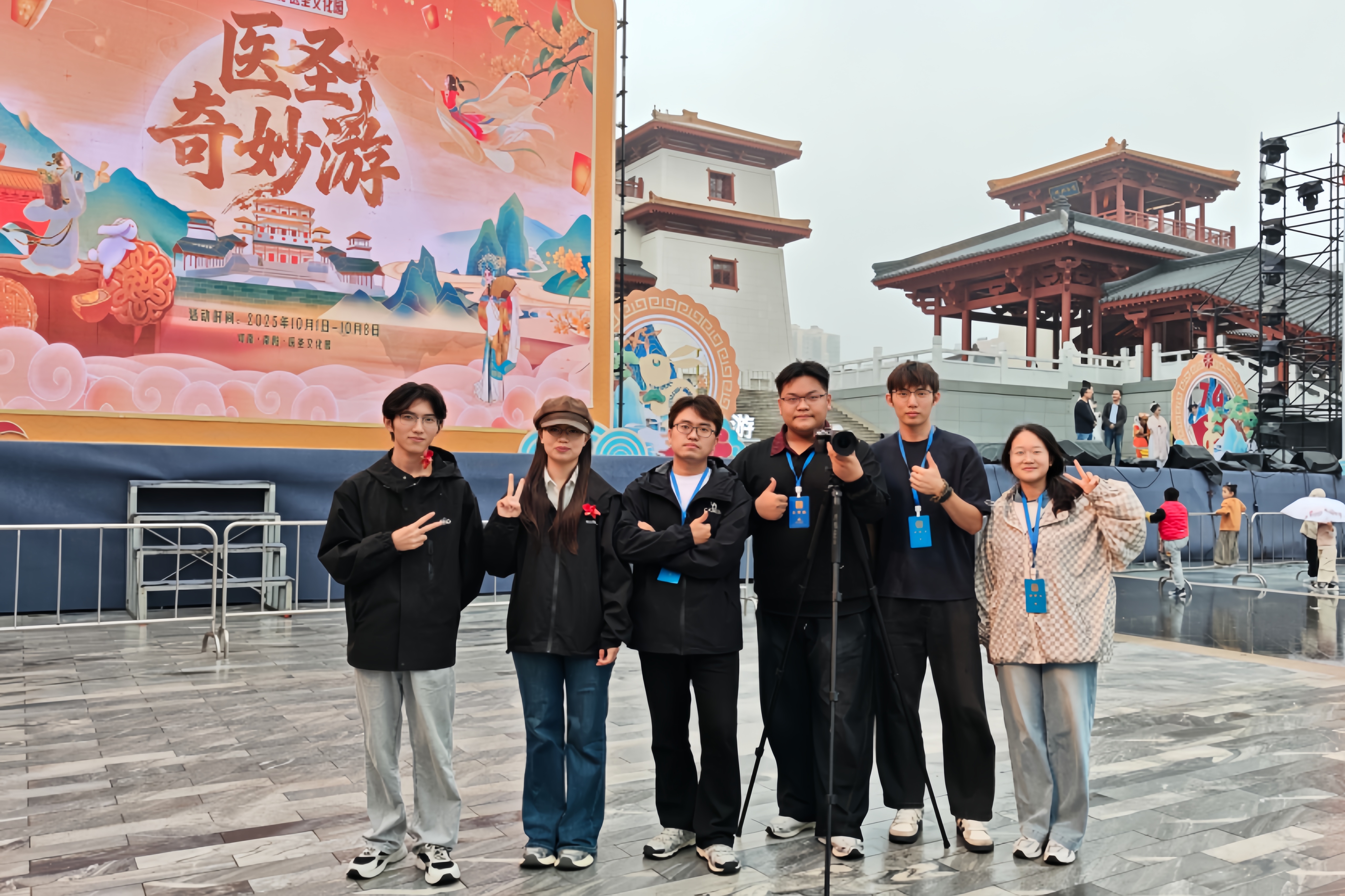 此次“医圣奇妙游”历时8天,由河南卫视和南阳医圣文化园联合打造,是一场以“医圣文化”为核心,融合中医养生、国潮演艺、沉浸体验与新媒体传播的文化嘉年华。每天12个小时不间断的丰富活动,吸引了众多游客慕名打卡。活动期间,传媒学院学生全程参与新媒体宣传工作,用短视频记录了这场“雨打不散”的文化盛宴,生动呈现了南阳中医药文化与现代文旅融合的鲜活图景。