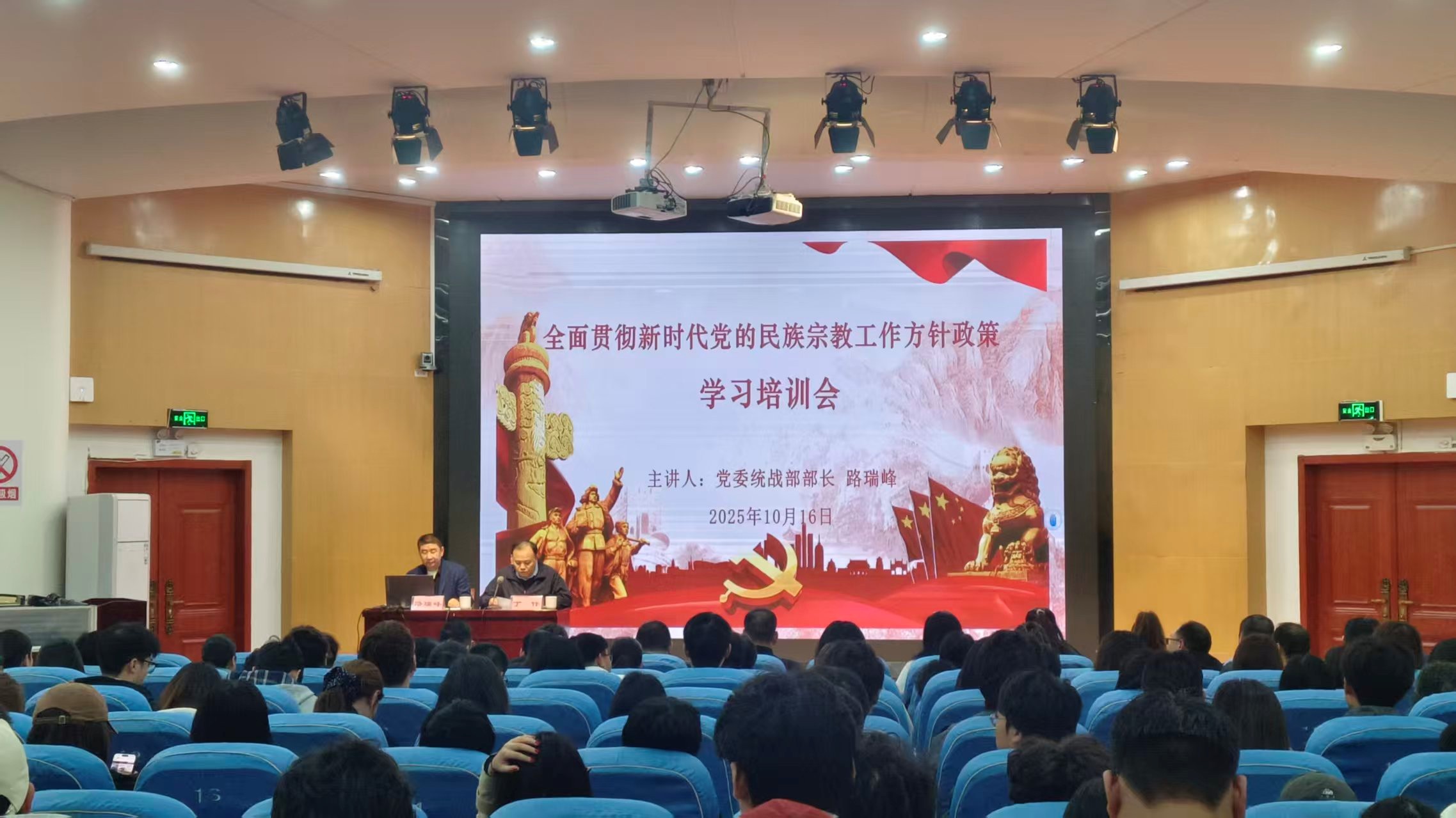 校党委统战部部长路瑞峰担任主讲人,他凭借深厚的理论功底和丰富的实践经验,从当代中国的宗教与宗教问题、宗教工作的重要性、中国共产党的宗教工作基本方针、习近平总书记关于宗教工作的重要论述以及如何全面贯彻新时代党的民族宗教工作方针政策五个方面,深入浅出地解读新时代党的民族宗教工作方针政策。从政策的历史背景到当下的实践要求,从宏观的理论框架到具体的案例分析,通过生动的语言和鲜活的事例,让抽象的政策变得通俗易懂,使在场师生对民族宗教工作有了更为全面、深入的认识。