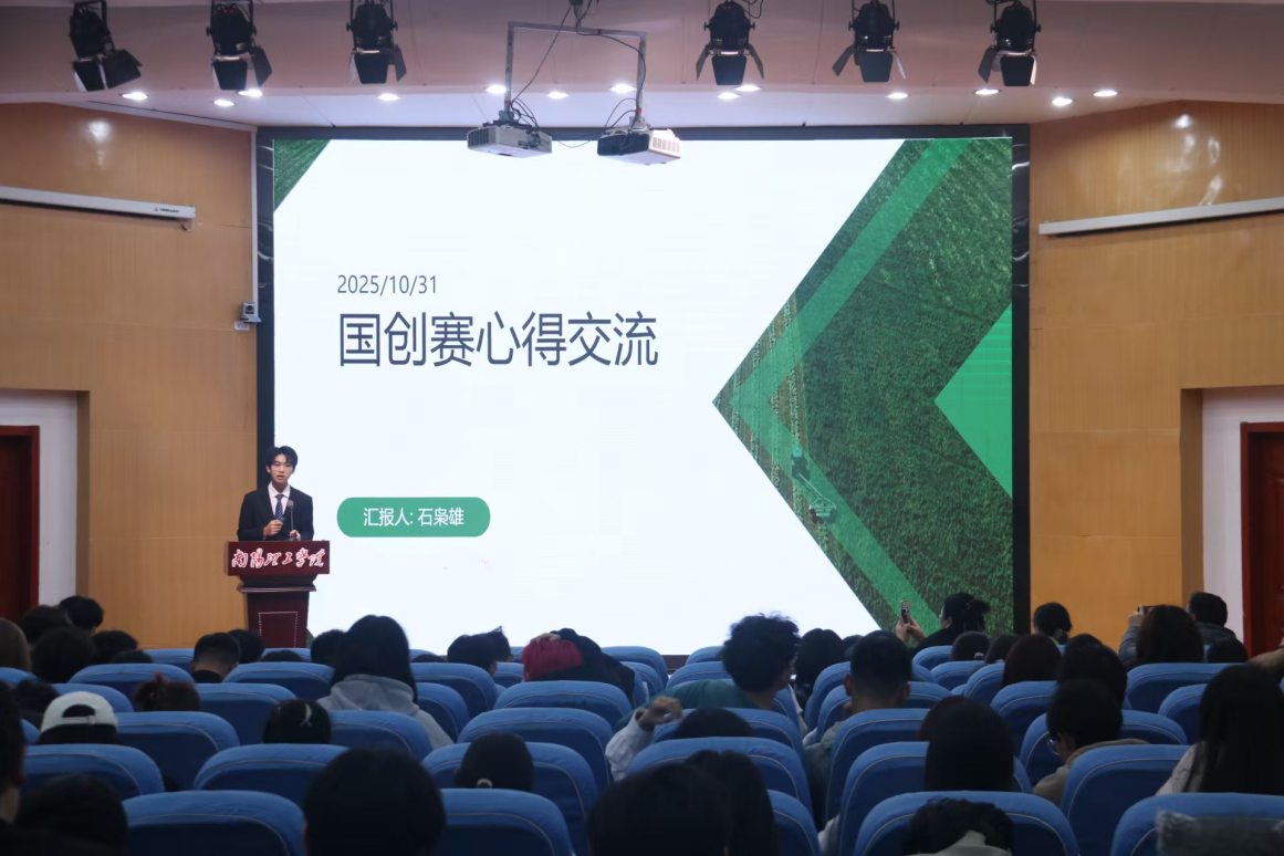 褚德庆同学详细介绍国创赛备赛全流程,从前期调研到方案落地逐一解析,并聚焦答辩PPT逻辑架构与临场应变策略,提供可操作性强的实战指导。他结合“数字化”“智能化”产业趋势,引导学生思考创业方向与职业规划,引发热烈讨论。石枭雄同学以自身参赛经历为切入点,用幽默通俗的语言分享赛事经验,通过案例分析直观呈现备赛技巧与心得,帮助学生深化对国创赛的理解。