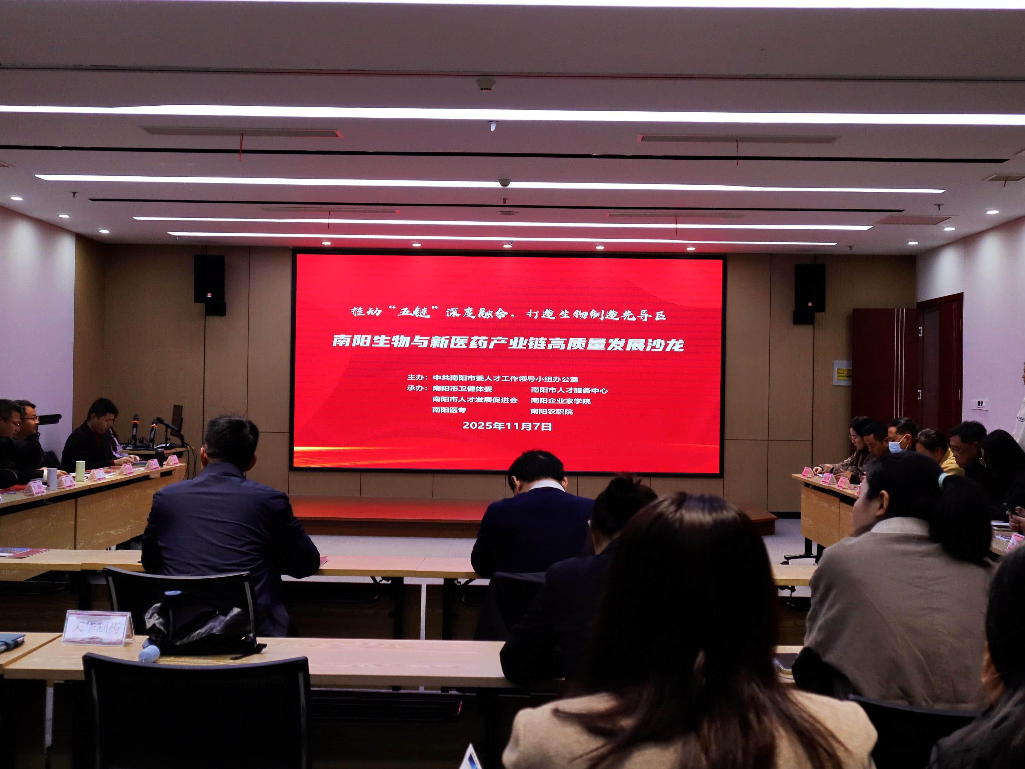 本网讯(特约记者/李玉)11月7日,以“推动‘五链’深度融合,打造生物制造先导区”为主题的南阳生物与新医药产业链高质量发展沙龙在市人才服务中心举办。沙龙由南阳理工学院相关负责人主持。南阳生物与新医药产业链企业负责人代表、专家学者齐聚一堂,围绕打造全国知名的南阳生物与新医药产业大市,加强人才培养,推动成果转化,完善产业体系,提升产业链能级等议题献计献策、共谋发展。南阳市人才服务中心党总支委员、副主任陈建辉,南阳市卫健体委一级调研员陈少禹出席会议。