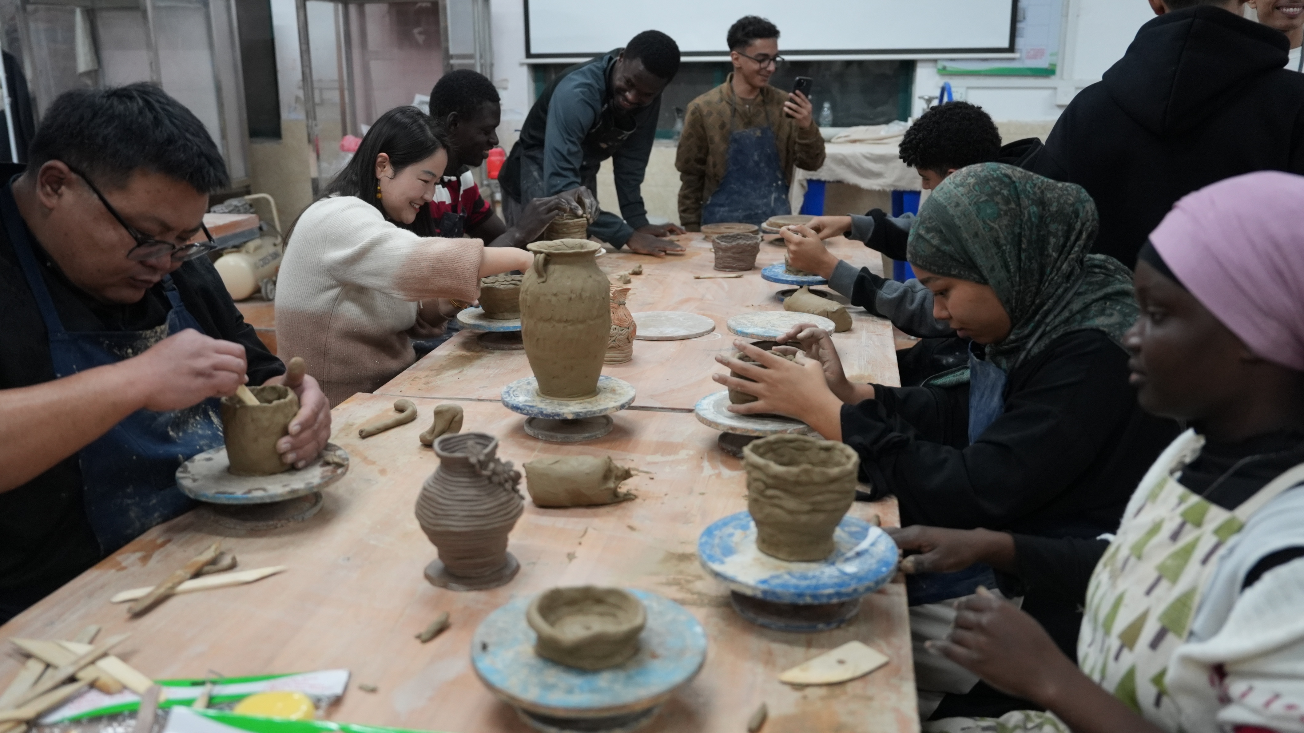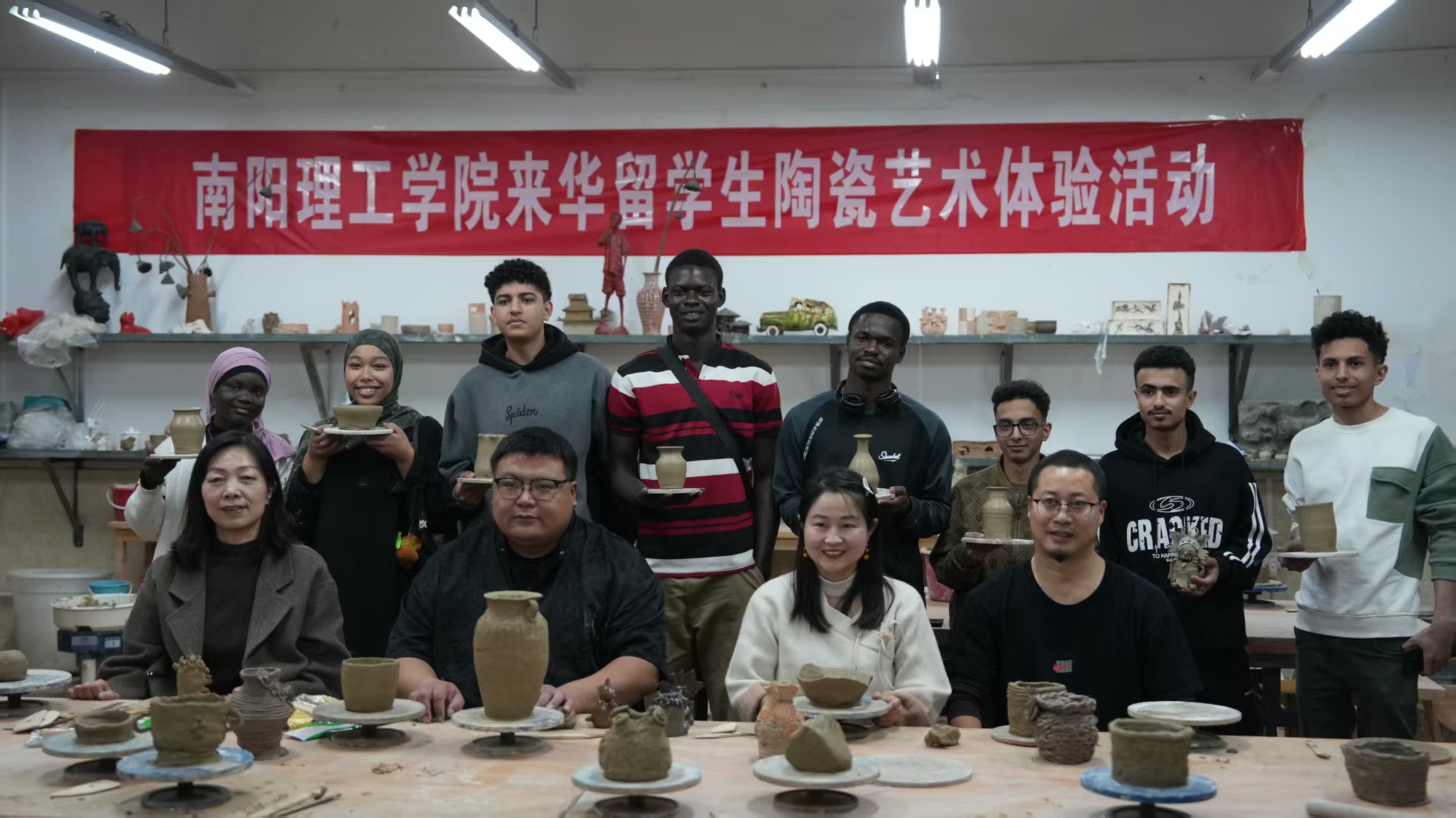 近四个小时的体验课结束后,留学生们捧着自己的作品合影留念。布基纳法索留学生彦宁表示:“课程很有趣,我很开心。亲手做的陶艺花瓶,虽然不够完美,但很有意义,使我感受到了中国文化的细腻与包容。”