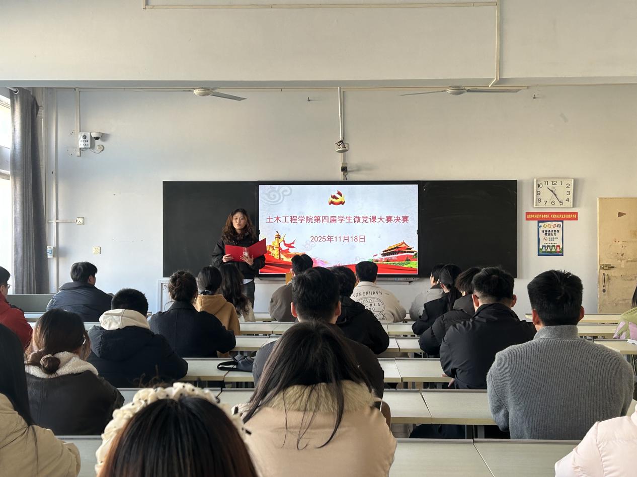 此次微党课大赛是土木工程学院党委创新党员教育形式、提升育人实效的重要举措。活动以赛促学、以学促行,让学生党员们在思想上受到深刻洗礼,能力上得到全面锻炼,进一步坚定了听党话、跟党走的决心,同时有效引导广大青年学子从革命文物中汲取精神滋养和前进力量,进一步坚定理想信念,激发爱国热情与时代担当,为实现中华民族伟大复兴的中国梦贡献青春力量。(校对/邢园园 审核/田进军 编辑/杜欣欣 终审/鲁静薇)