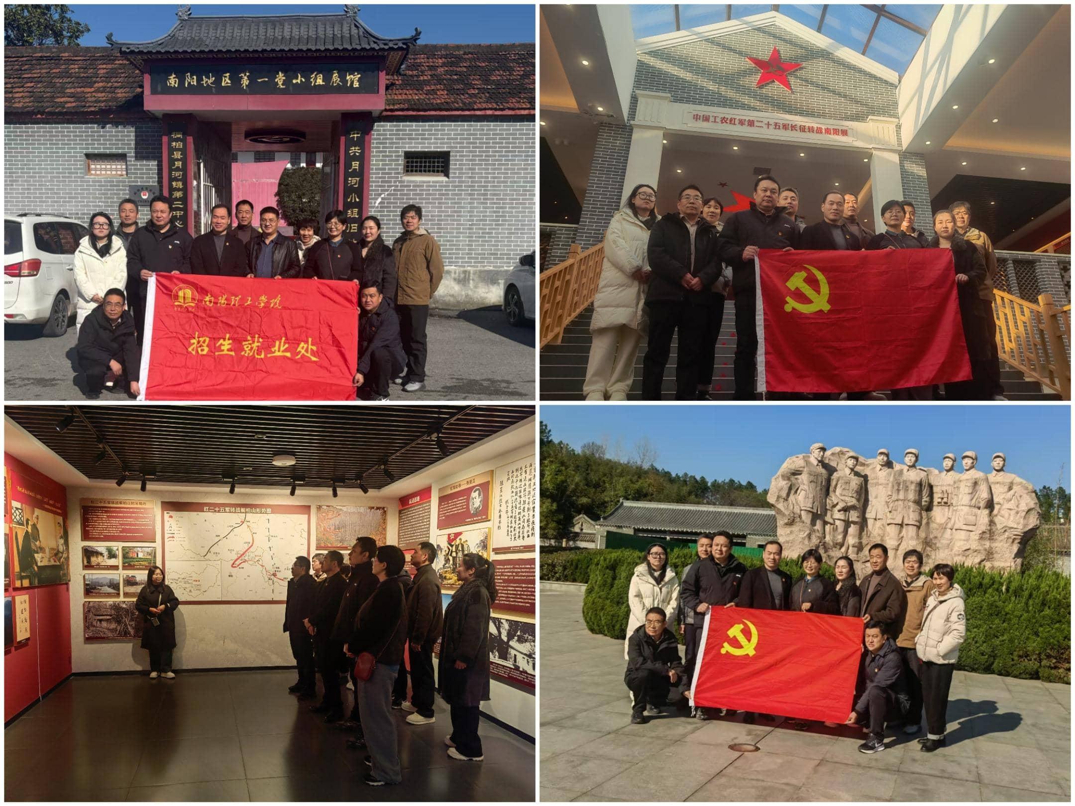 本网讯(通讯员/张宏茜)11月 19 日,招生就业处党支部组织全体党员赴桐柏县,参观月河镇桐柏第一党支部、桐柏革命纪念馆和新集磨沟红二十五军转战地,开展沉浸式主题党日活动。