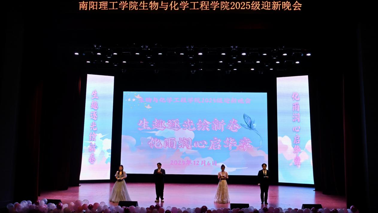 本网讯(特约记者/梁瀚余 学生通讯员/陈佳镓 梁梦慧 李美佳)12月6日,生物与化学工程学院在东校区音乐厅举办“生趣逐光绘新卷,化雨润心启华章”2025级迎新晚会。学院领导和学生们齐聚一堂,以歌舞传情、以才艺寄愿,共同表达对新生的欢迎与祝福。