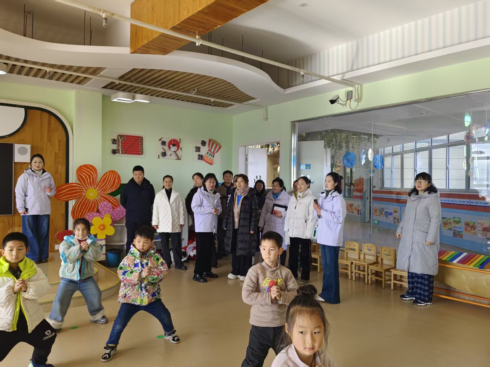 随后,调研团队赴南阳市第六完全学校幼儿园,参加该园名师工作室启动活动,并与宛城区教体局相关负责人及园方管理团队进行深入交流。团队认真听取幼儿园在项目式课程、游戏化学习及环境创设方面的创新实践汇报,并围绕 “托幼一体化”政策背景下学前教育人才培养的转型路径、U-G-S协同育人机制的深化等议题展开研讨。实地观摩特色功能室与游戏活动区,为学院探索学前教育向“婴幼儿发展与健康管理”等新兴交叉方向拓展,提供鲜活的一线素材。
