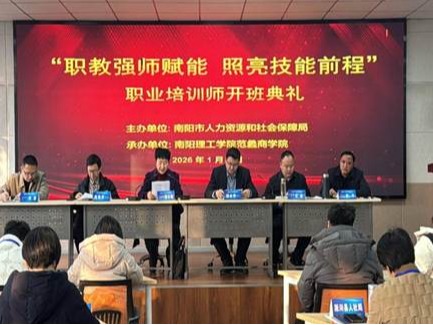 本网讯(通讯员/王君依)1月5日,由南阳市人力资源和社会保障局主办、南阳理工学院范蠡商学院承办的“职教强师赋能,照亮技能前程”职业培训师开班典礼顺利举行。来自南阳市各领域的职业教育从业者、技能培训骨干齐聚南阳理工学院,共同开启此次赋能培训。