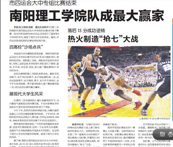 此次比赛南阳理工学院队发挥出色,豪取羽毛球男子、女子单打和男子、女子团体赛的第一名,此外还获得男子、女子排球,男子、女子乒乓球单打,女子乒乓球团体赛,男子篮球和第九套广播体操的第一名,成为此次比赛的最大赢家。