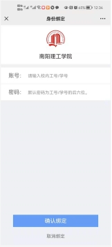 点击公众号底部【更多】-【身份绑定】,选择“南阳理工学院”进入绑定页面;
