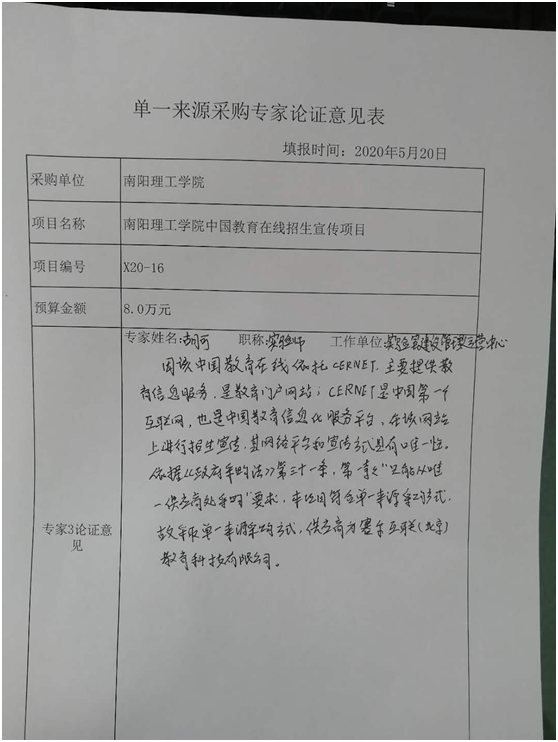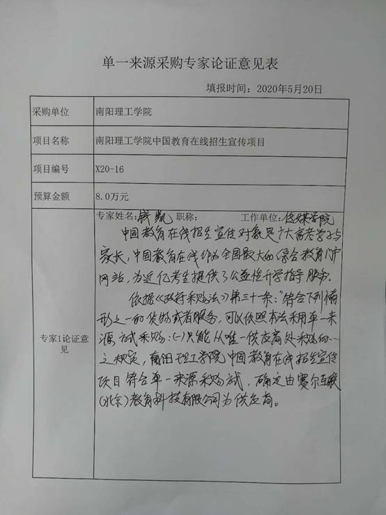 南阳理工学院中国教育在线招生宣传项目拟采用单一来源采购的公示