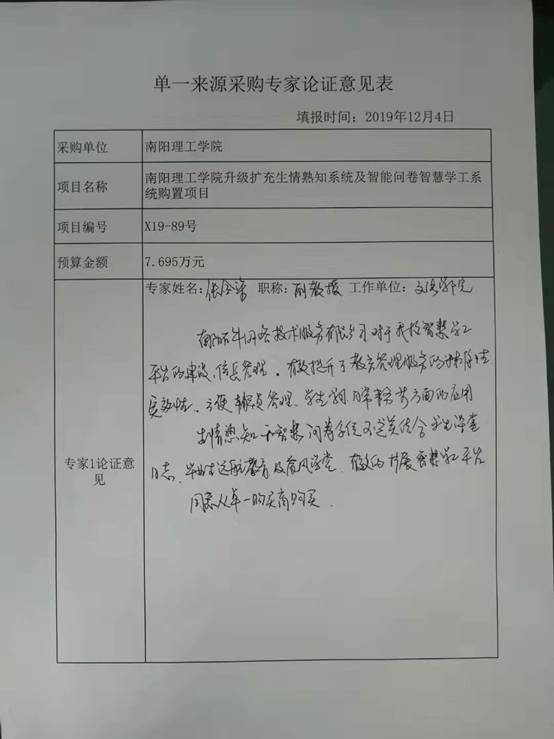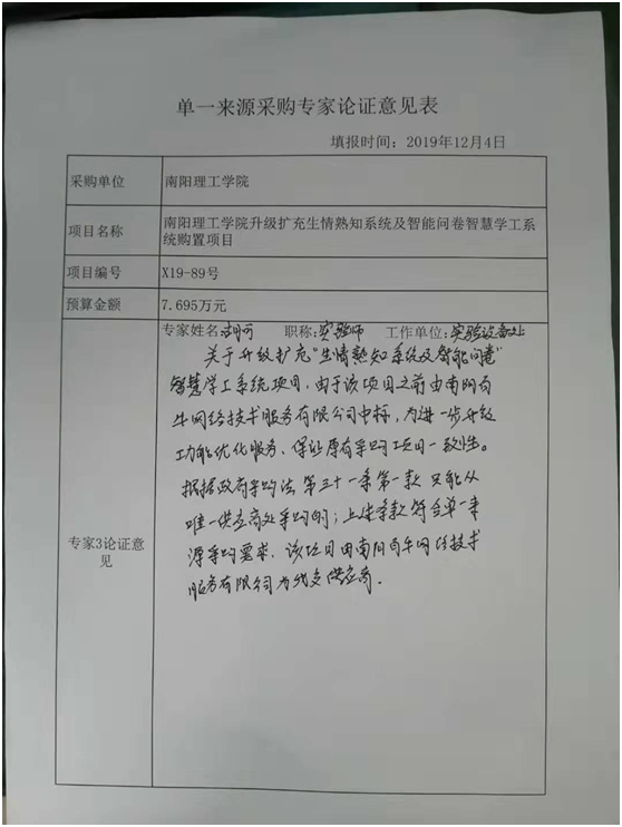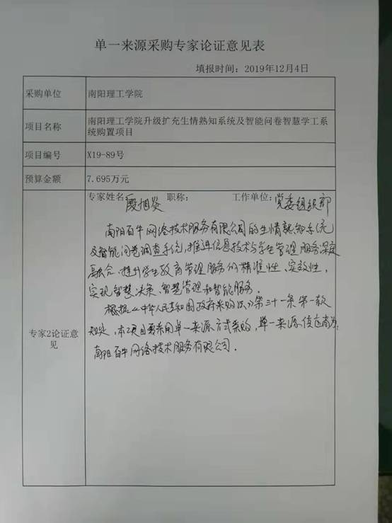 南阳理工学院升级扩充生情熟知系统及智能问卷智慧学工系统购置项目拟采用单一来源采购的公示