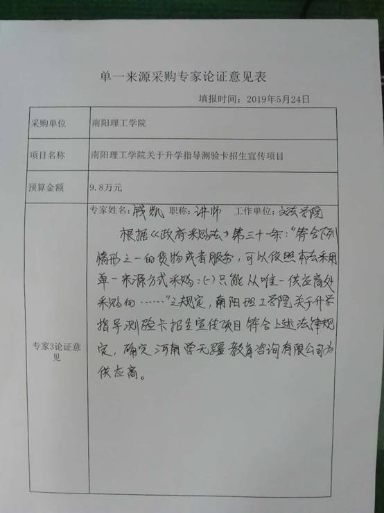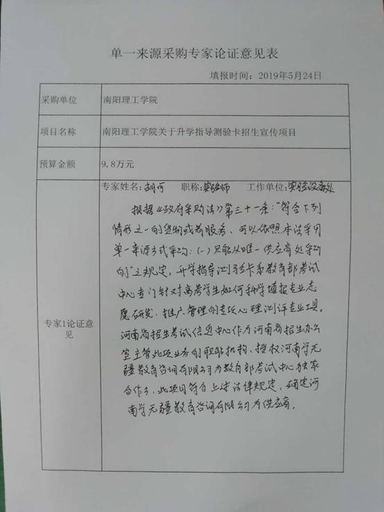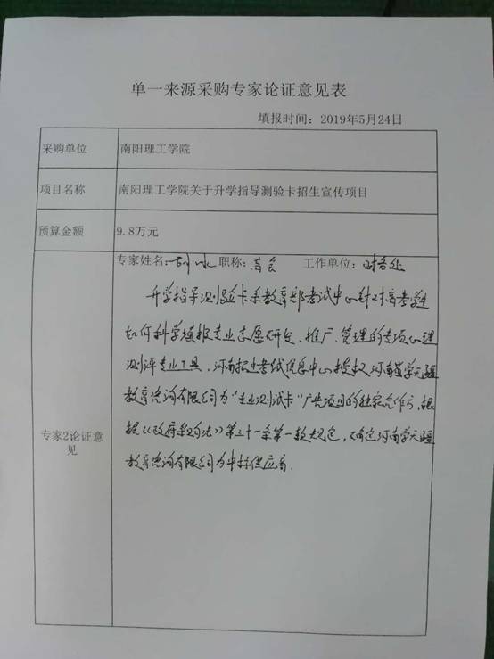 南阳理工学院关于升学指导测验卡招生宣传项目拟采用单一来源方式采购。现公示如下: