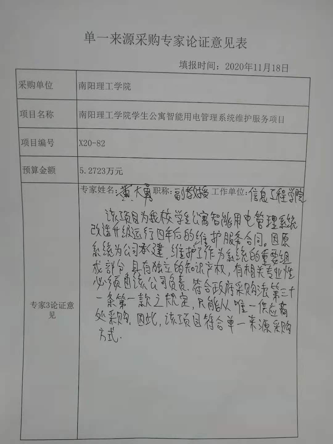 南阳理工学院学生公寓智能用电管理系统维护服务项目拟采用单一来源采购的公示