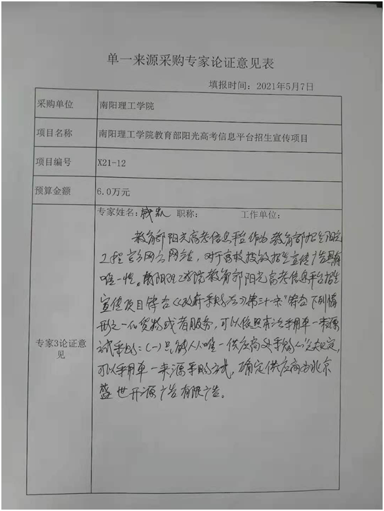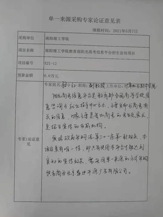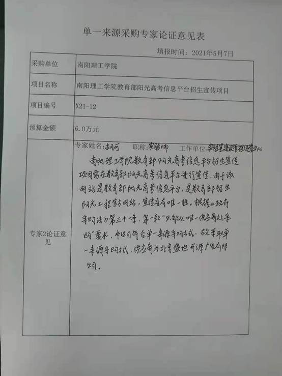南阳理工学院教育部阳光高考信息平台招生宣传项目拟采用单一来源采购的公示