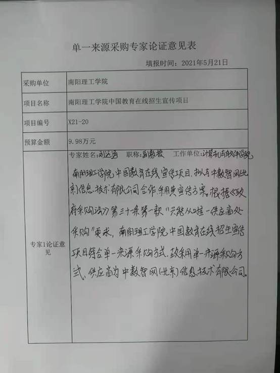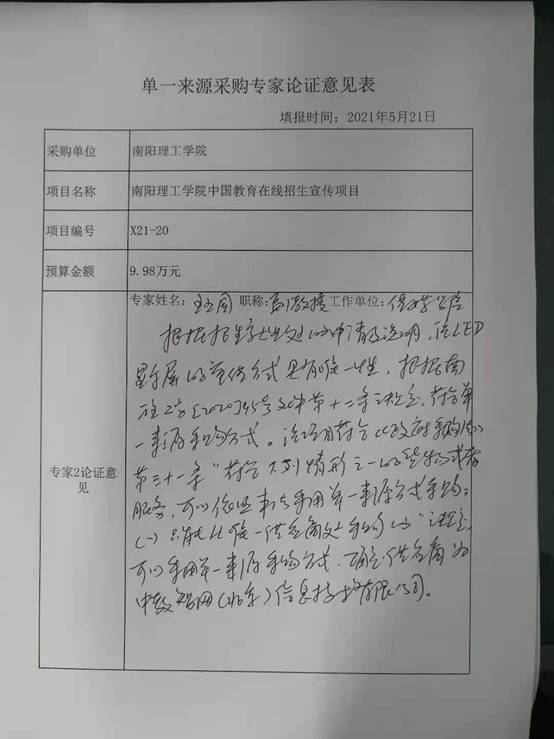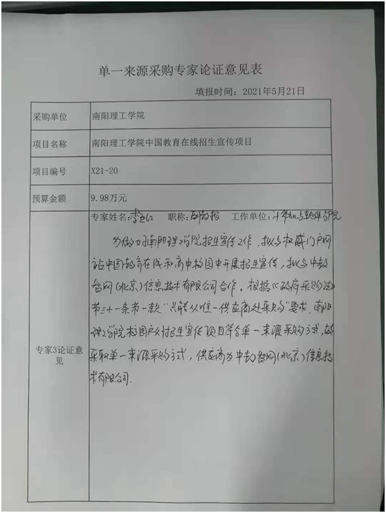 南阳理工学院中国教育在线招生宣传项目拟采用单一来源采购的公示