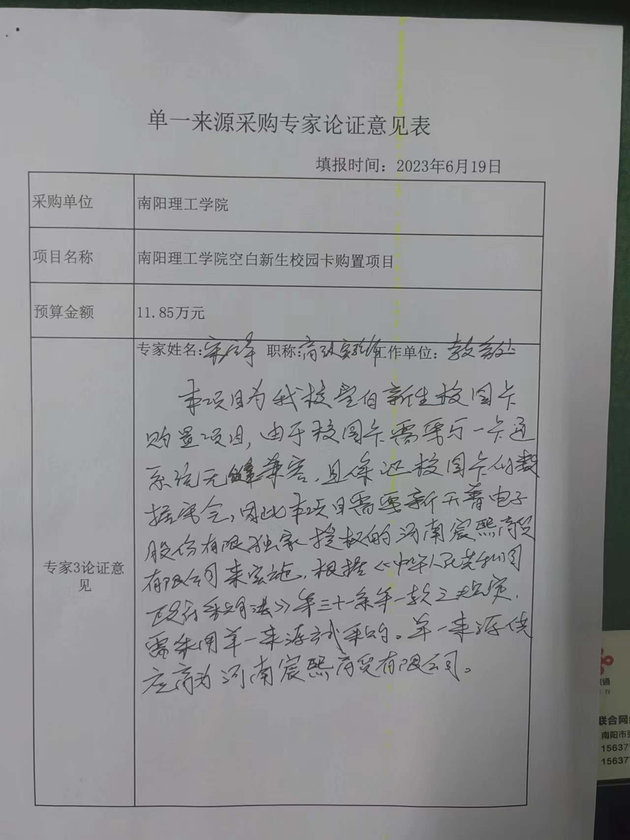 南阳理工学院空白新生校园卡购置项目拟采用单一来源采购的公示