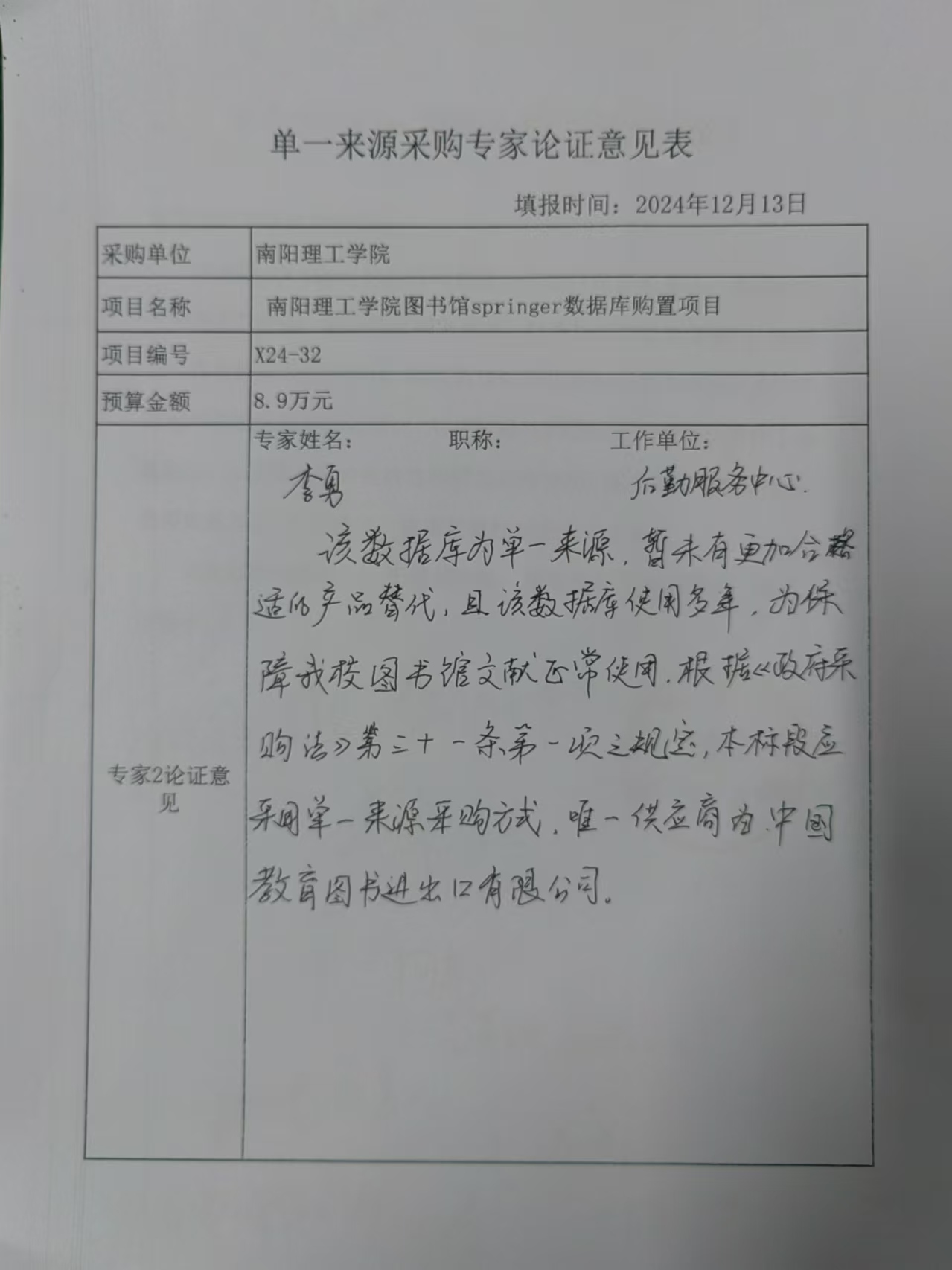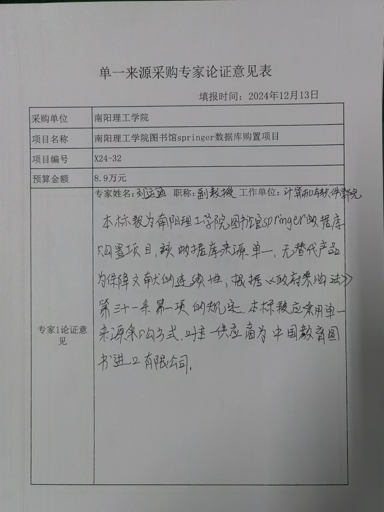 南阳理工学院图书馆springer数据库购置项目拟采用单一来源采购的论证公示