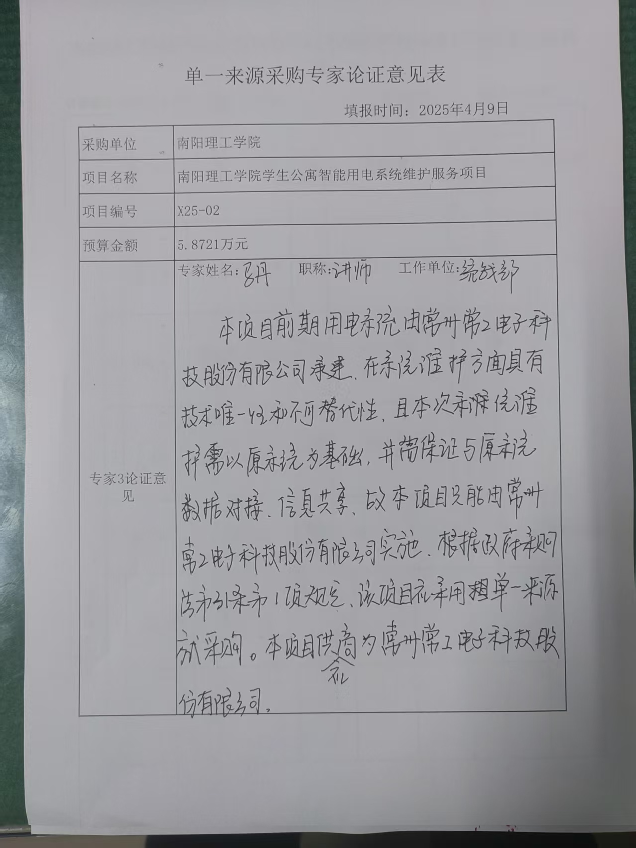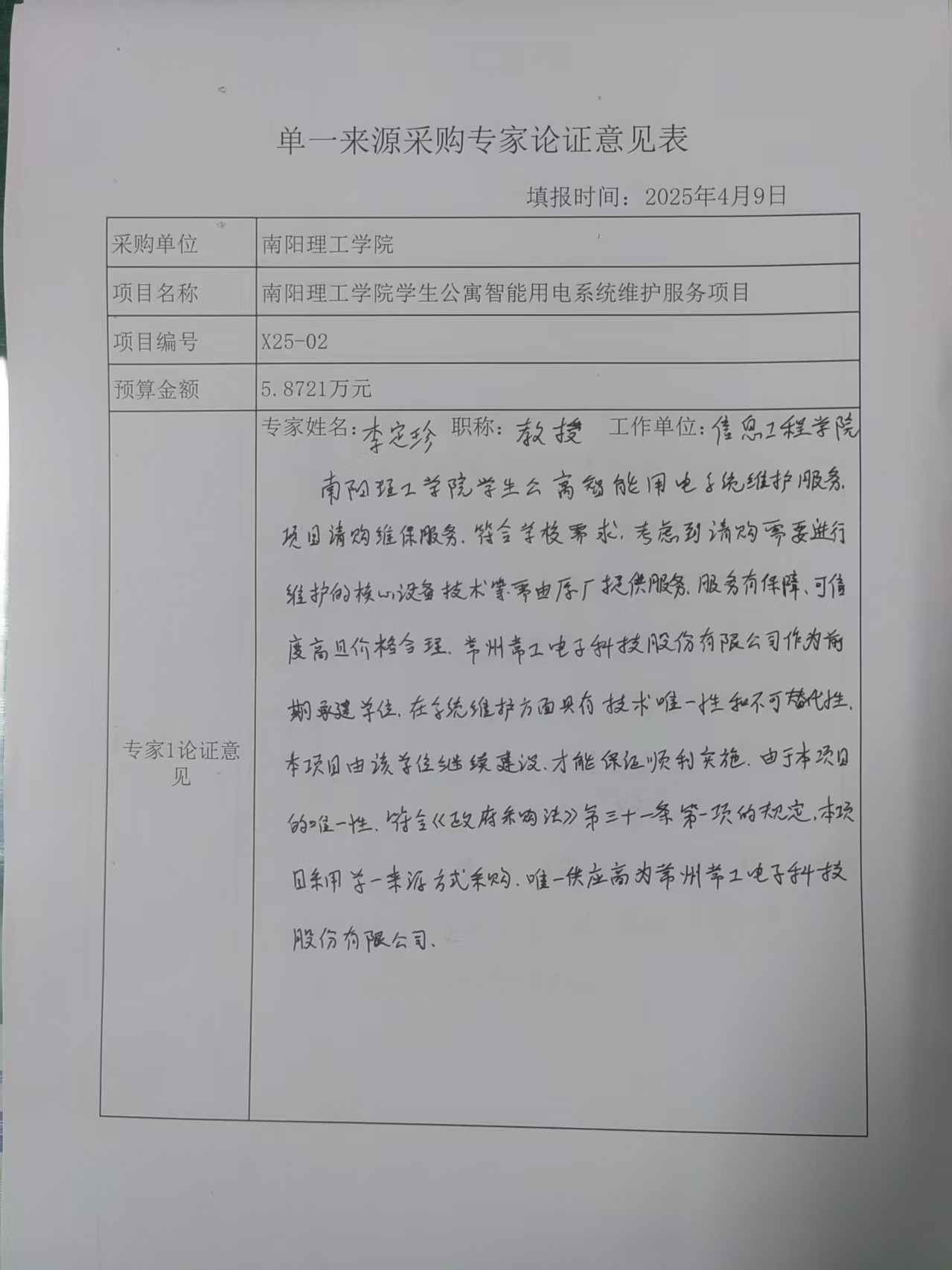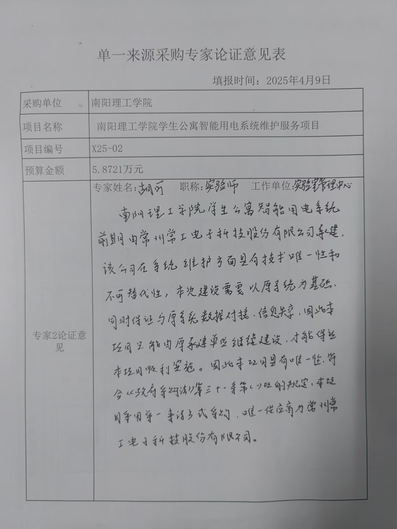 南阳理工学院学生公寓智能用电系统维护服务项目拟采用单一来源采购的论证公示