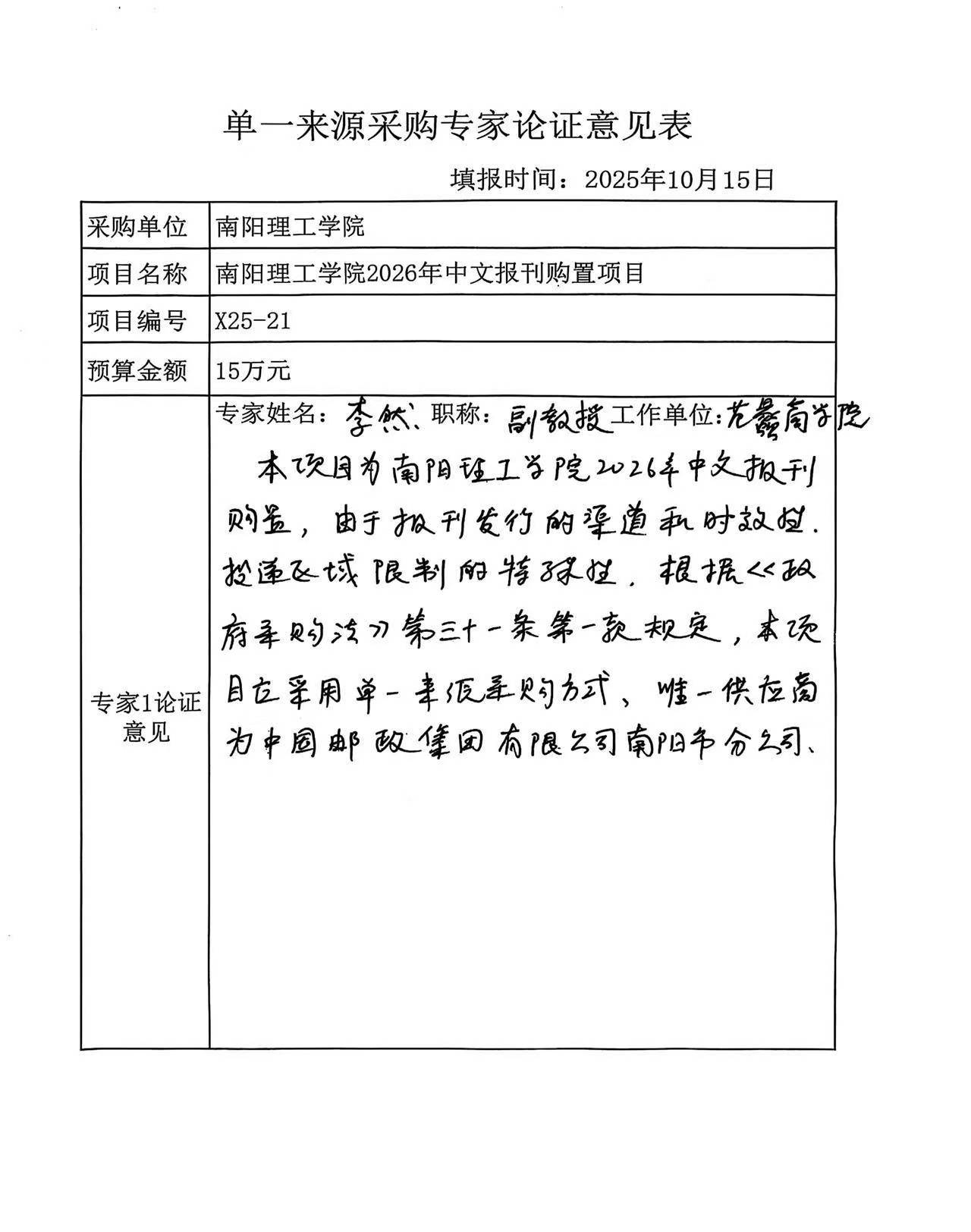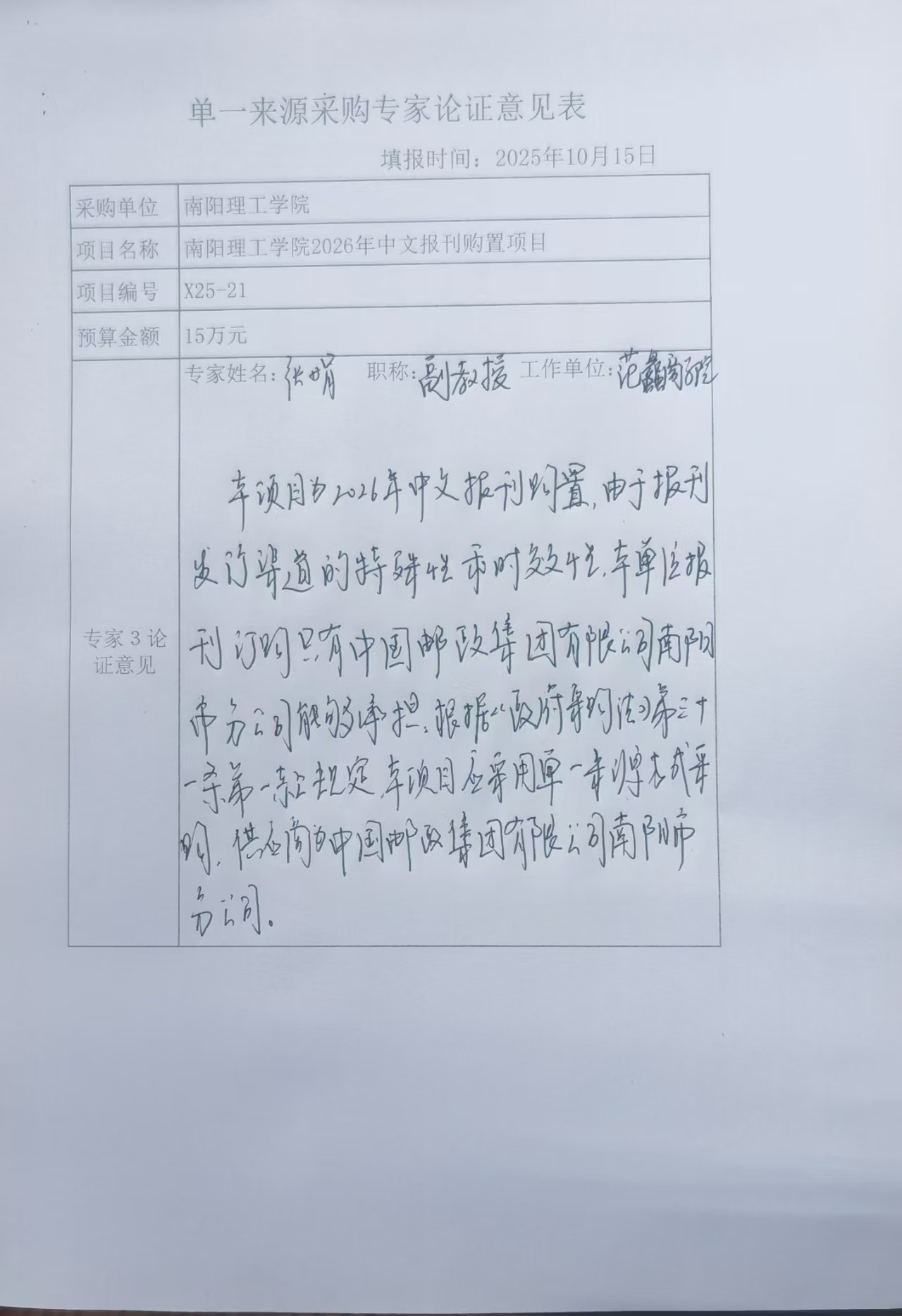 南阳理工学院2026年中文报刊购置项目拟采用单一来源采购的论证公示